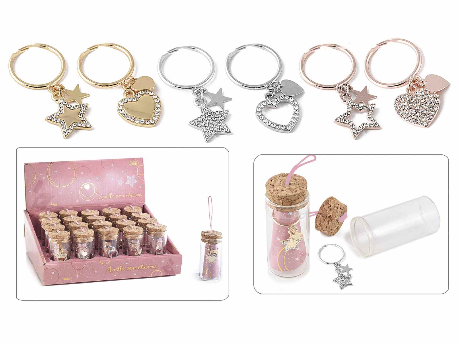 Inel metalic reglabil cu inimioare și stele în eprubetă