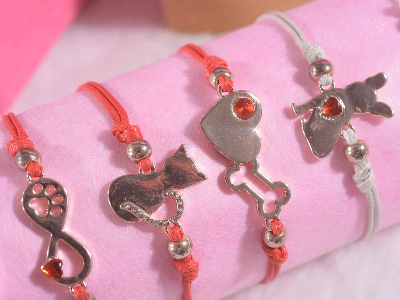 20 buca?i de bra?ari colorate cu frânghie cu tema animalelor de companie în afi?aj