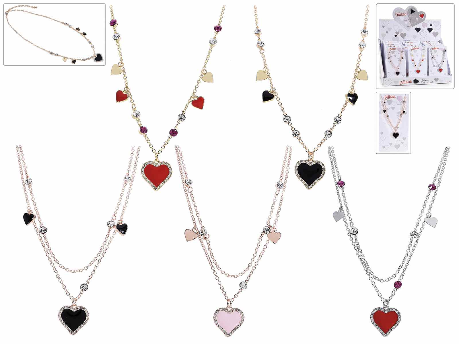 Coliere metalice cu inimioare lăcuite și pietre prețioase, cu un card de prezentare cu 20 de piese pentru Ziua Îndrăgostiților