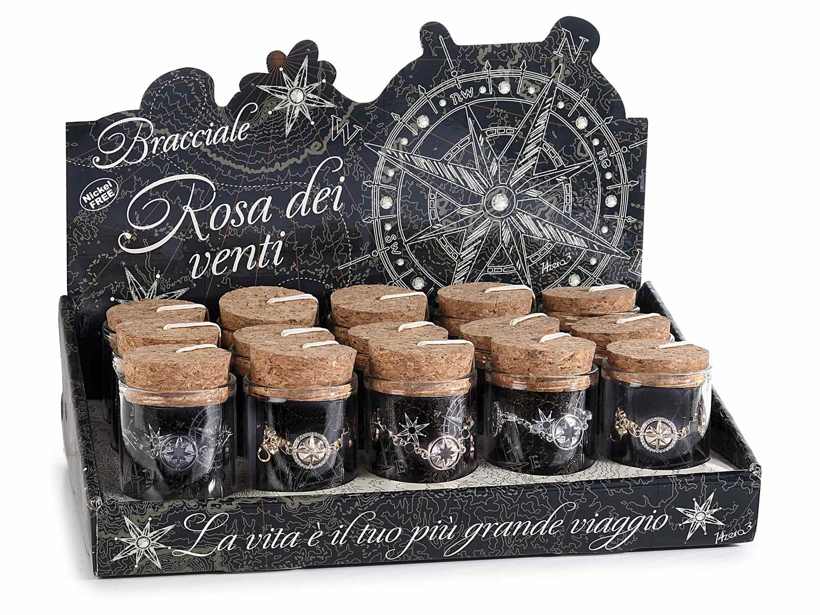 Brățări cu trandafirul vânturilor într-un tub de sticlă și un display de 15 piese
