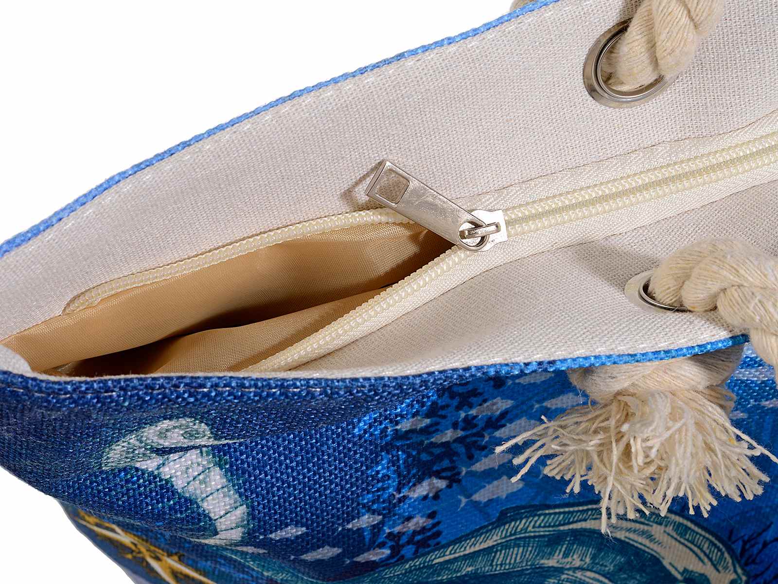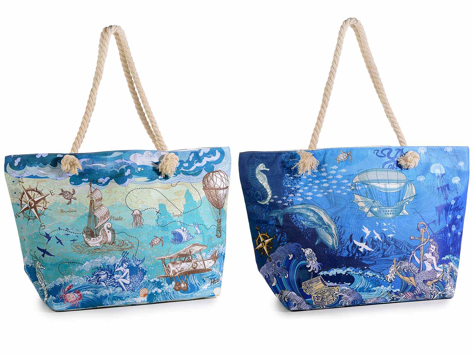 Genți de plajă din material textil cu mânere de frânghie