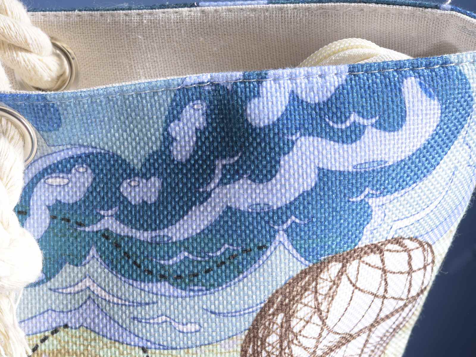 Geantă de plajă din material textil cu mânere de frânghie