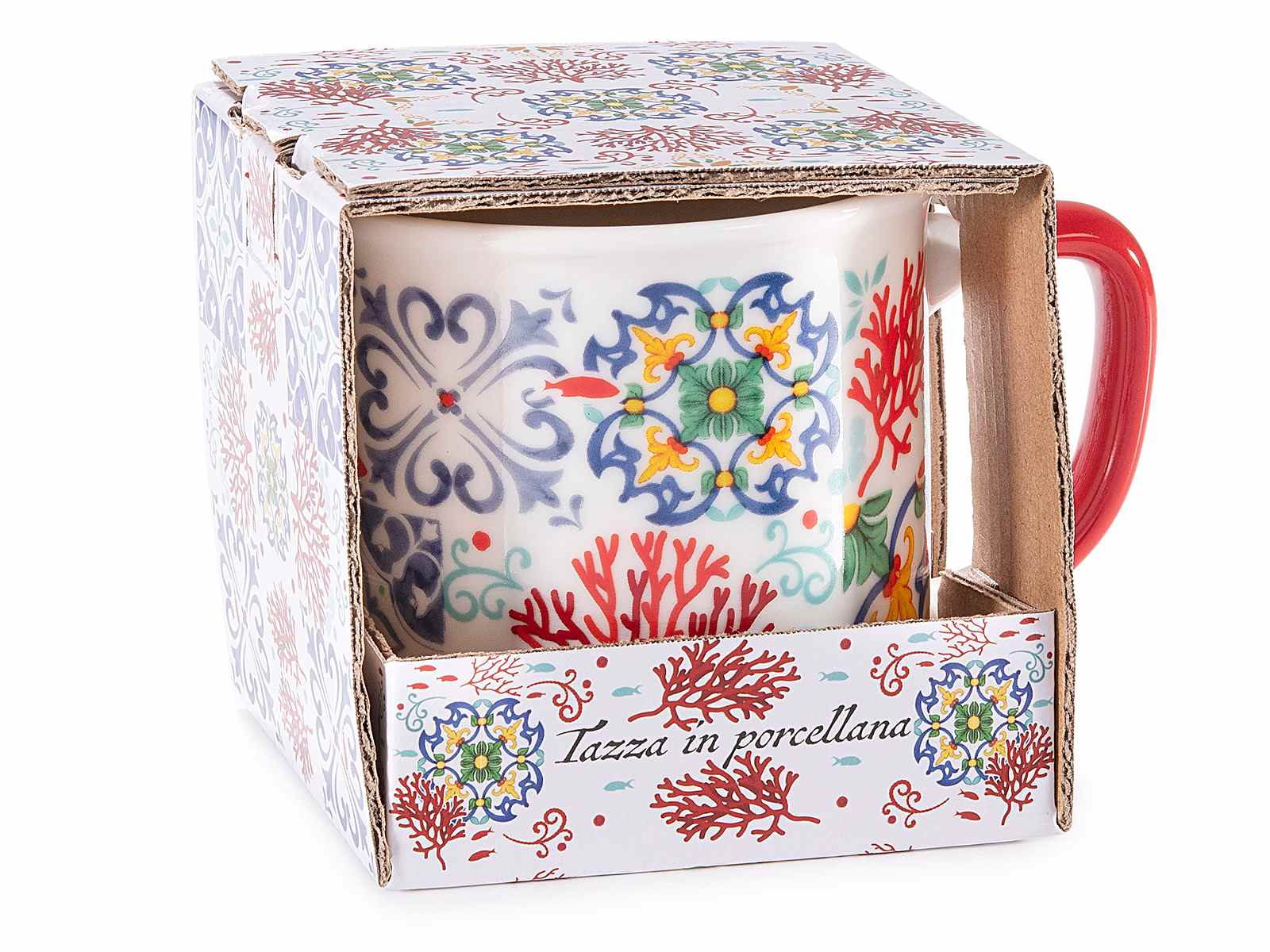 Căni de porțelan cu modele din majolică și coral, în cutie cadou