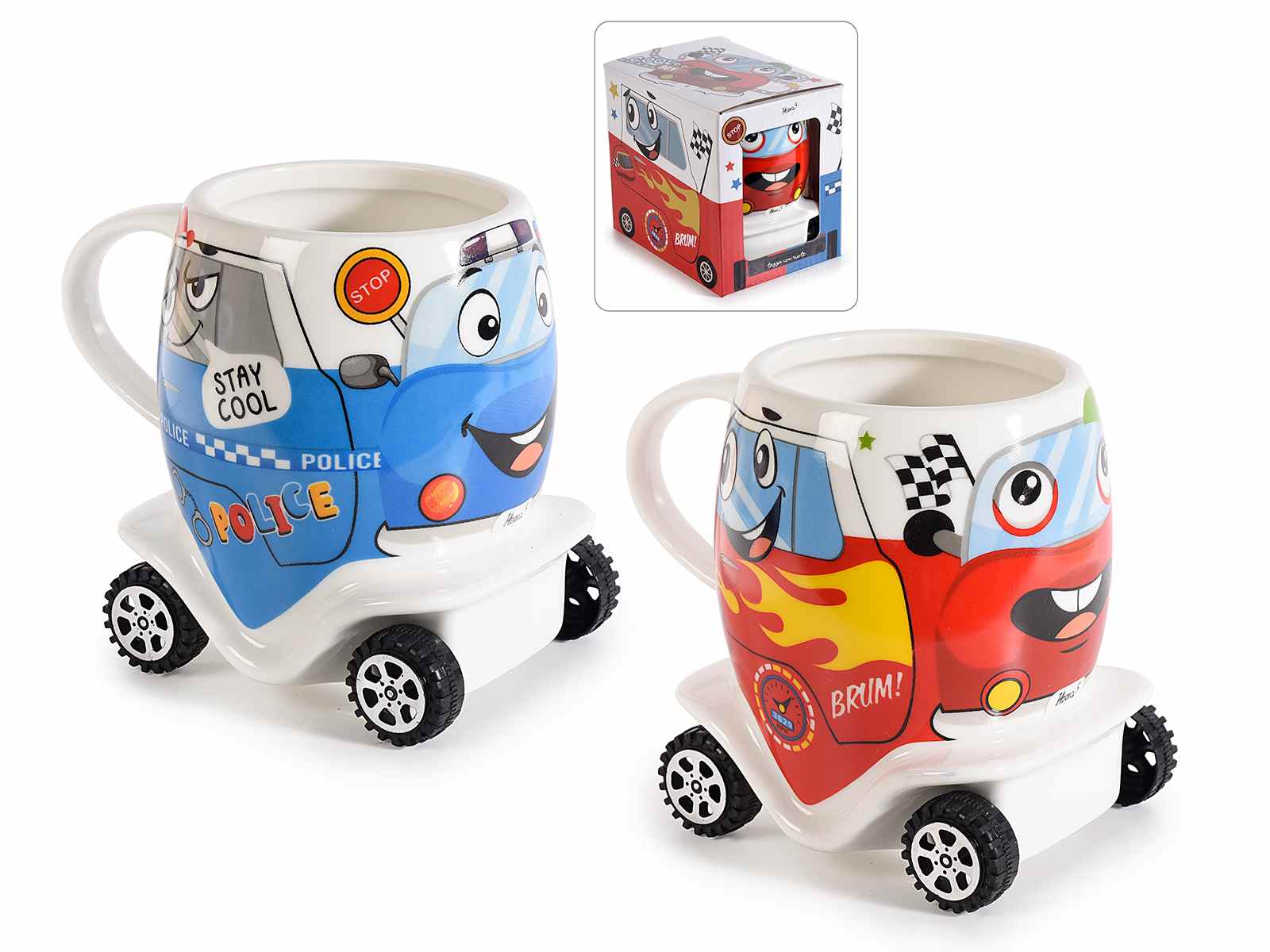 Cești cu roți din porțelan pentru copii în cutie cadou
