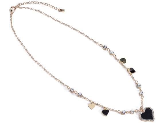 Colier metalic cu inimioare lăcuite și pietre prețioase cu c