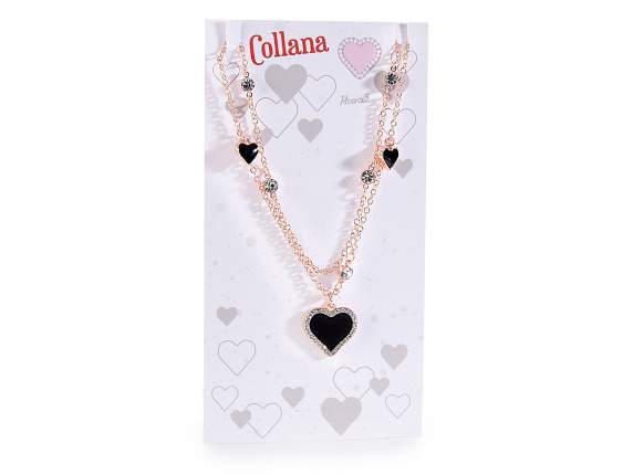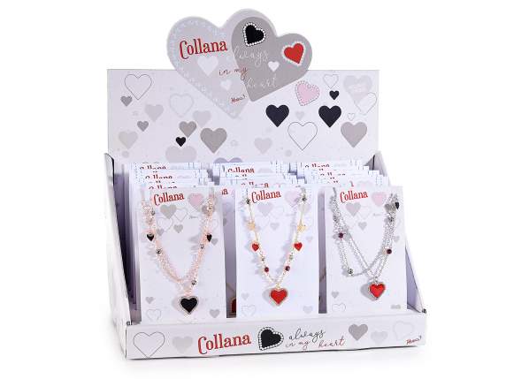 Coliere metalice cu inimioare lăcuite și pietre prețioase, cu un card de prezentare cu 20 de piese pentru Ziua Îndrăgostiților