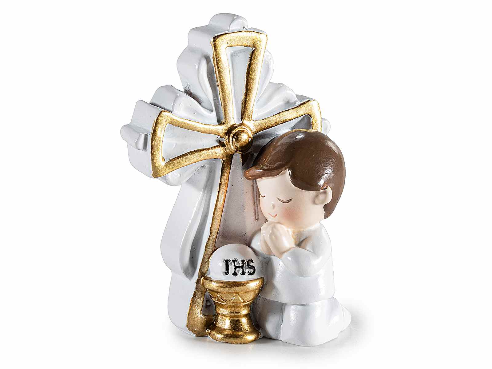 Copil din rășină cu cruce de împărtășanie și decorațiuni aur