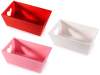 Coșuri/cutii din lemn de culoare roșie, albă și roz, cu mânere sculptate în formă de inimă, potrivite și pentru Ziua Îndrăgostiților