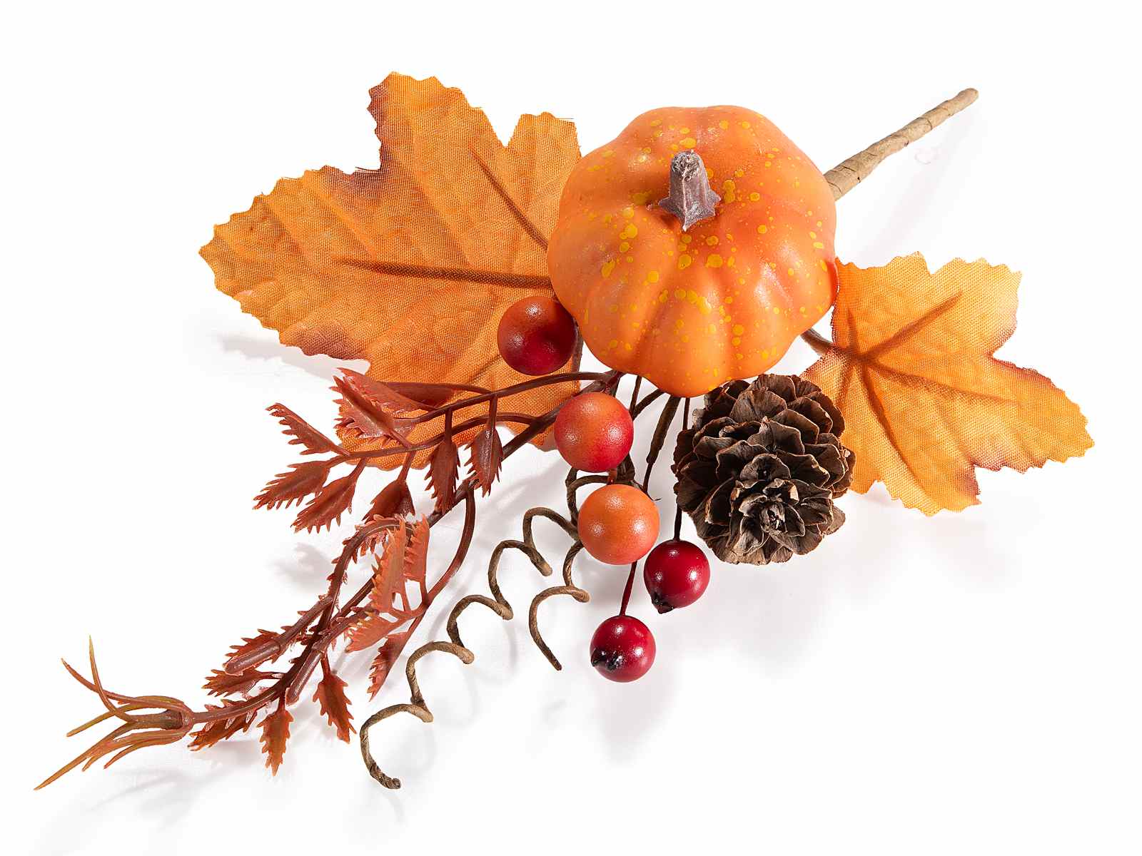 Crenguțe cu dovleac, con de pin, frunze de toamnă și fructe de pădure artificiale