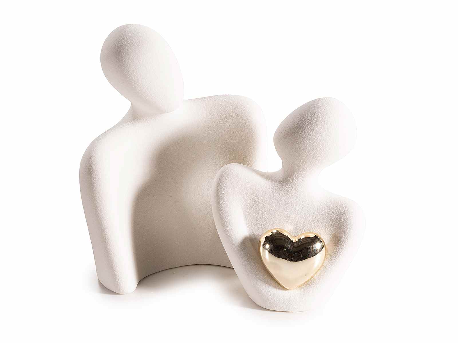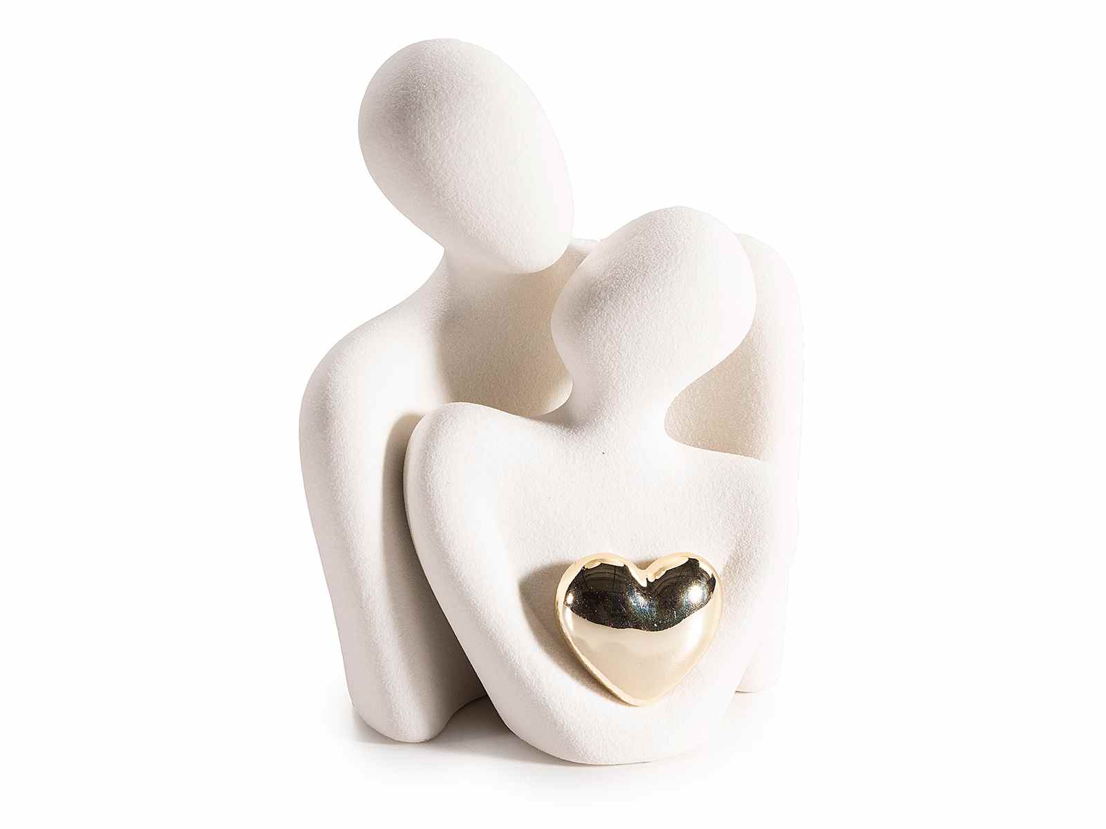 Cuplu îndrăgostit din porțelan cu o inimă de aur, ideal pentru cadouri de nuntă