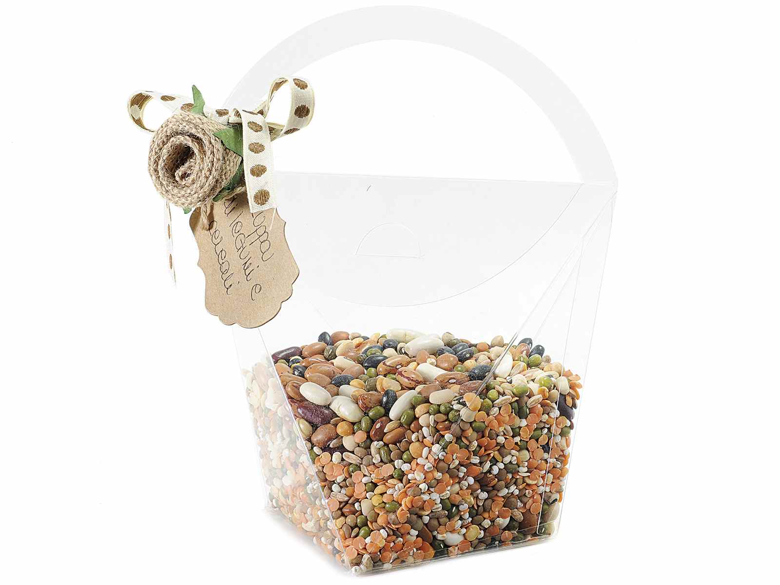Folosește cutia din PVC cu bază pătrată de 165x115x135 mm și mâner pentru a crea cu ușurință pachete cadou originale. Această cutie cu formă specială este ideală și pentru ambalarea produselor alimentare, cum ar fi biscuiți sau ciocolată de casă. Pur și simplu folosește panglici colorate din satin dublu, dantelă, organza, frânghie și iută pentru a crea un pachet cadou elegant.