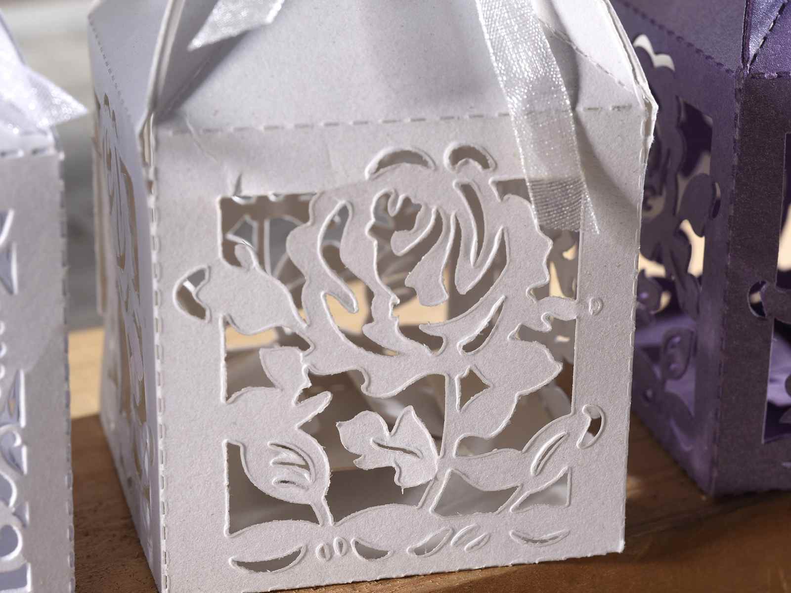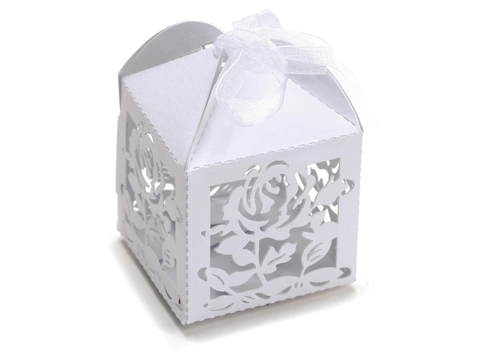 Cutie de favoruri din hârtie alba cu sclipici, sculpturi
