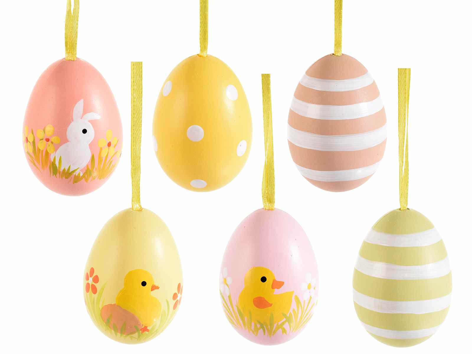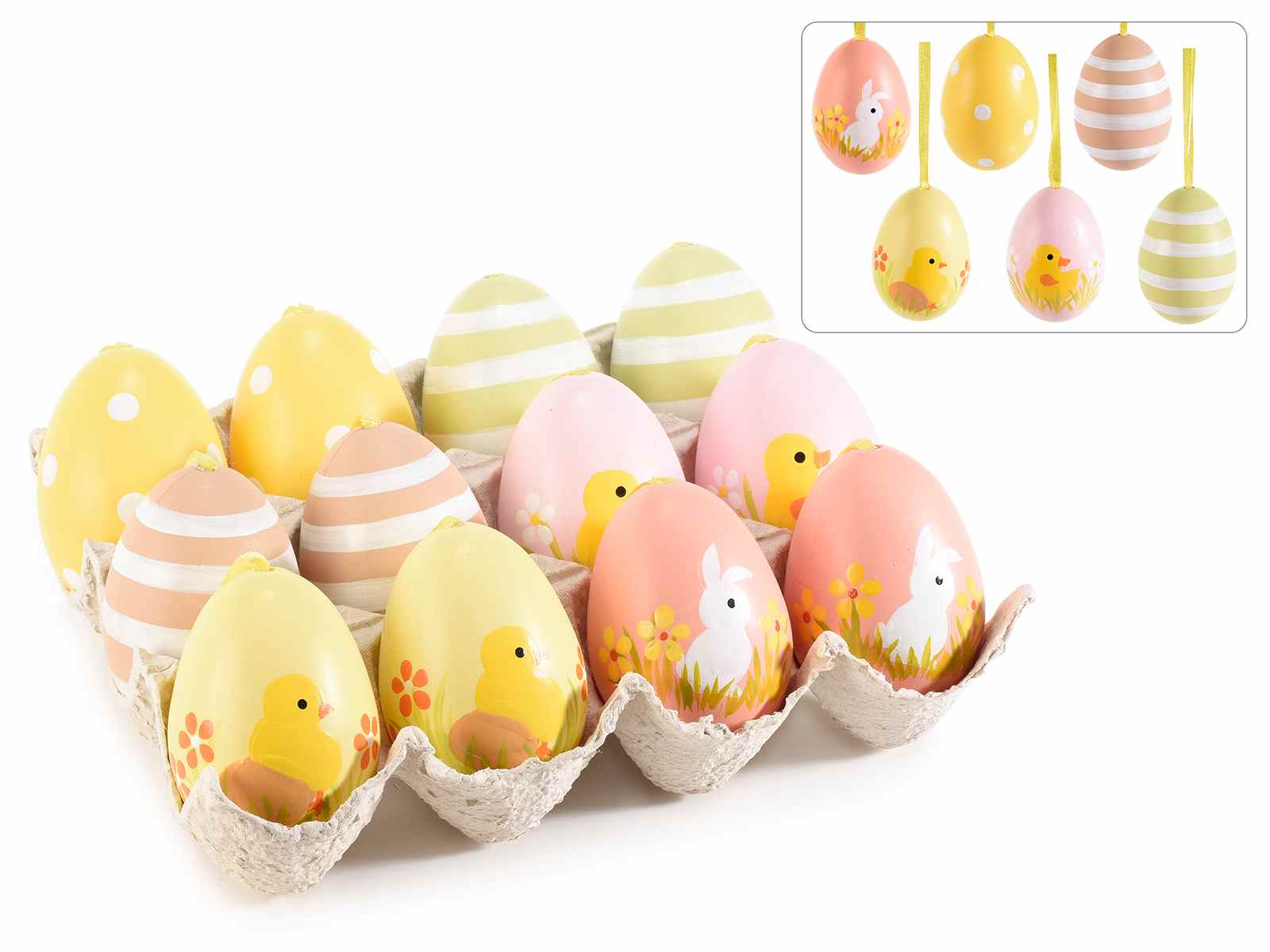 Ouă de Paște din plastic colorate pictate manual, suspendate în afișaj, 12 bucăți