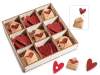 Decorațiuni din pânză în formă de inimă și litere din hârtie cu bandă dublu adezivă. Într-un display cu 72 de piese, sunt ideale pentru decorarea și împachetarea ideilor de cadouri de Ziua Îndrăgostiților/pentru îndrăgostiți.