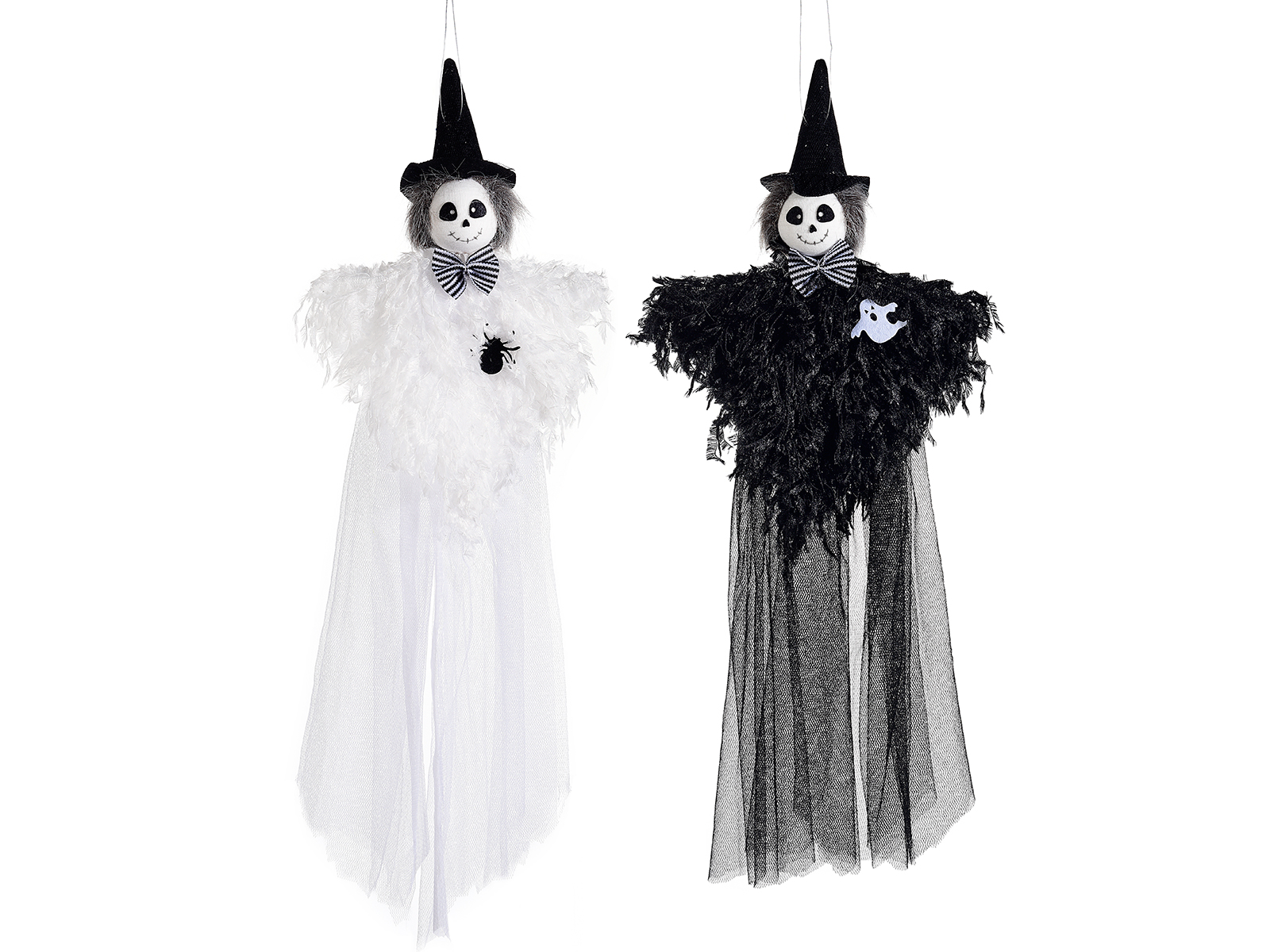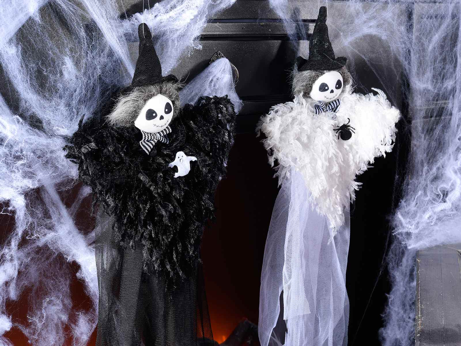 Fantome decorative de Halloween de agățat în tul și efect de pene ideale ca decor de vitrină