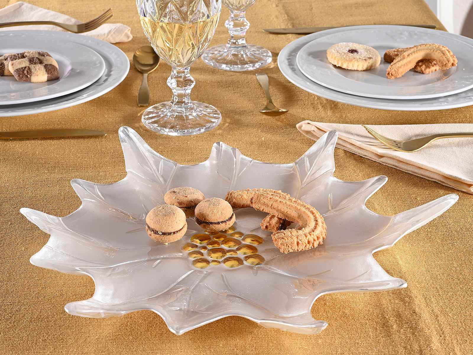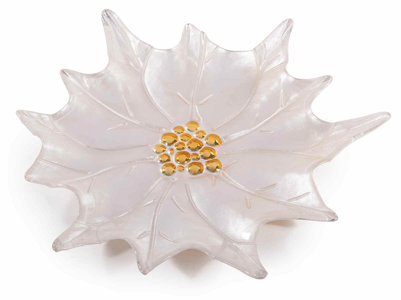 Farfurii de Crăciun potrivite pentru contactul cu alimentele, realizate din sticlă poinsettia alb perlat cu pistile aurii