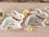 Farfurii decorative ceramice de Pa?te în forma de iepura?, cu decora?iuni florale colorate în relief ?i inscrip?ia Pa?te fericit