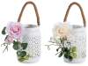 Felinare metalice cu lumânare electronică și mâner din frânghie, cu ramură de trandafir din material textil alb și roz, cu boboci și fructe de pădure