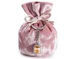 Geantă de catifea aurie cu breloc bijuterie și pietre