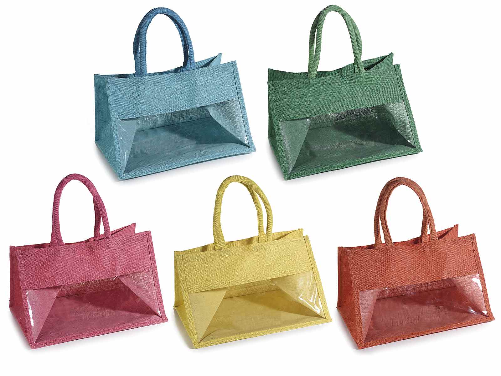 Saci de iută cu fereastră și mânere din frânghie de bumbac pentru împachetarea cadourilor