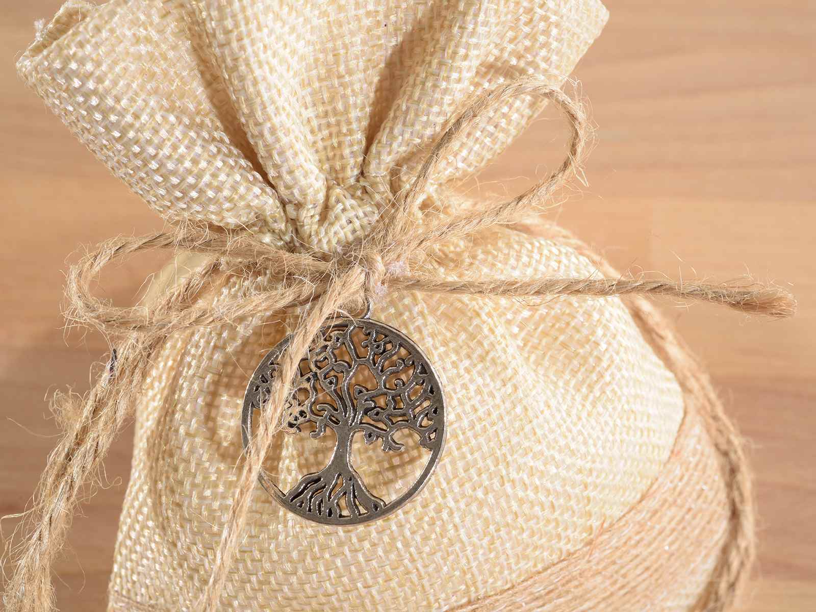 Pungi pentru cadouri din iută cu decorațiuni metalice, tema Copacul Vieții
