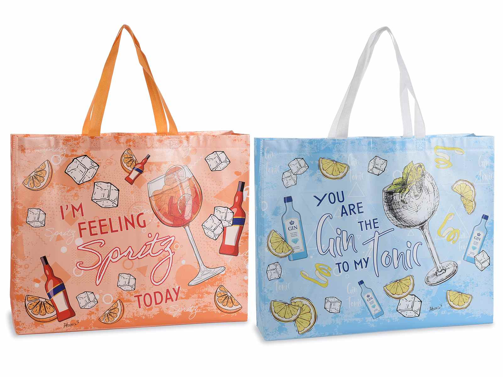 Pungi din material nețesut / pungi de cumpărături reutilizabile / pungi de cumpărături cu imprimeu de cocktailuri