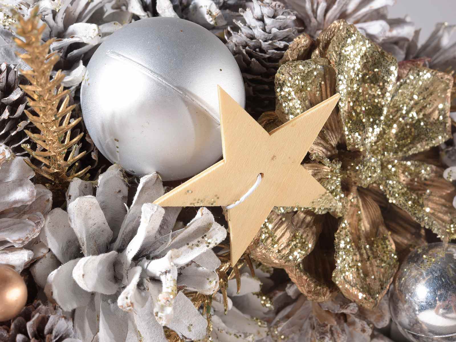 Ghirlande de Crăciun agățate din conuri de pin strălucitoare cu globuri, flori și stele