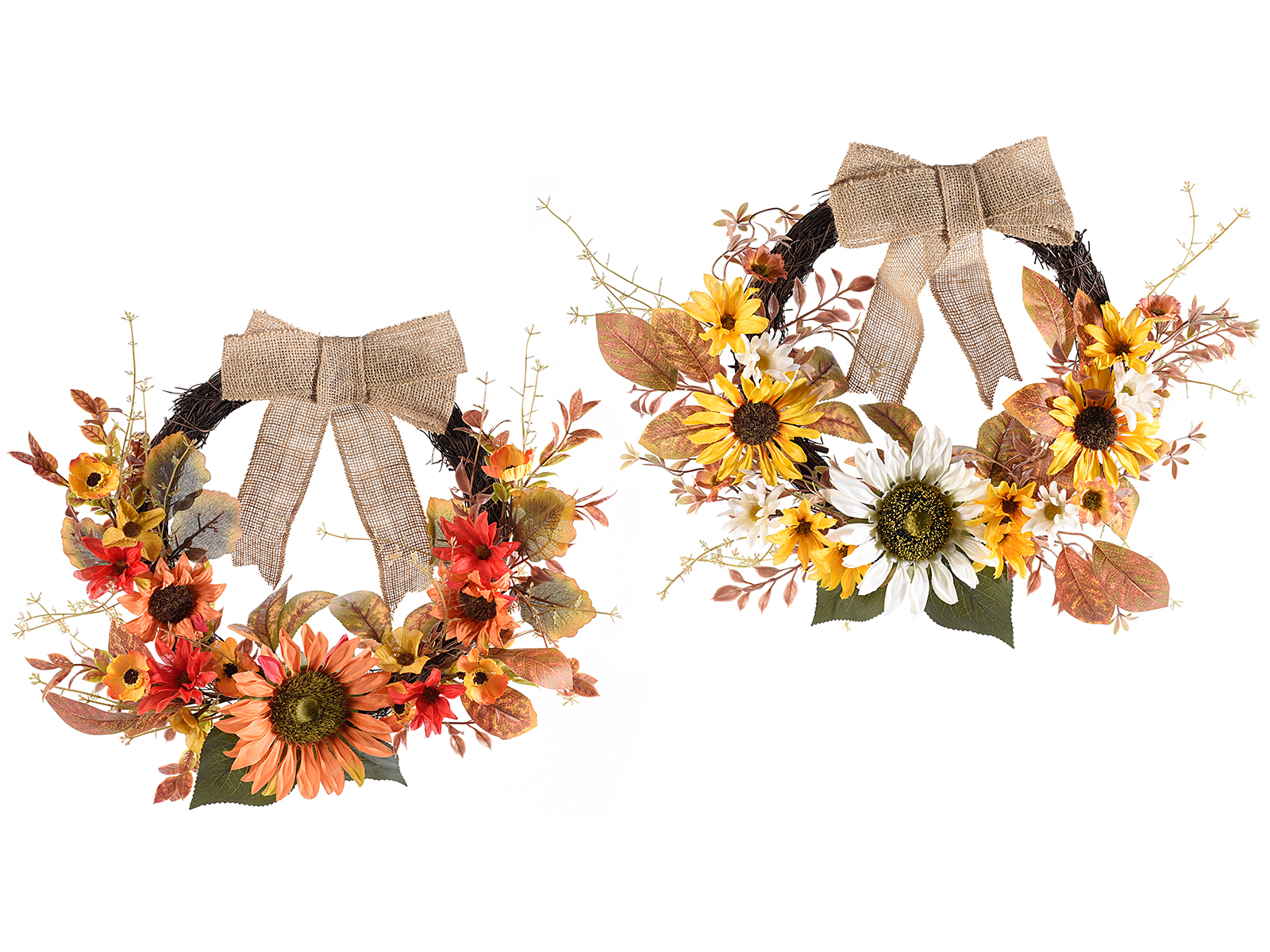 Coroane de toamnă de floarea soarelui artificială cu fundă de iută