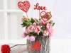 Inimioare decorative și scriere de dragoste în metal roșu pe stick, pentru Ziua Îndrăgostiților