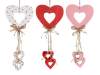 Inimioare colorate din lemn suspendate cu fundițe și inimioare de agățat, ideale pentru Ziua Îndrăgostiților