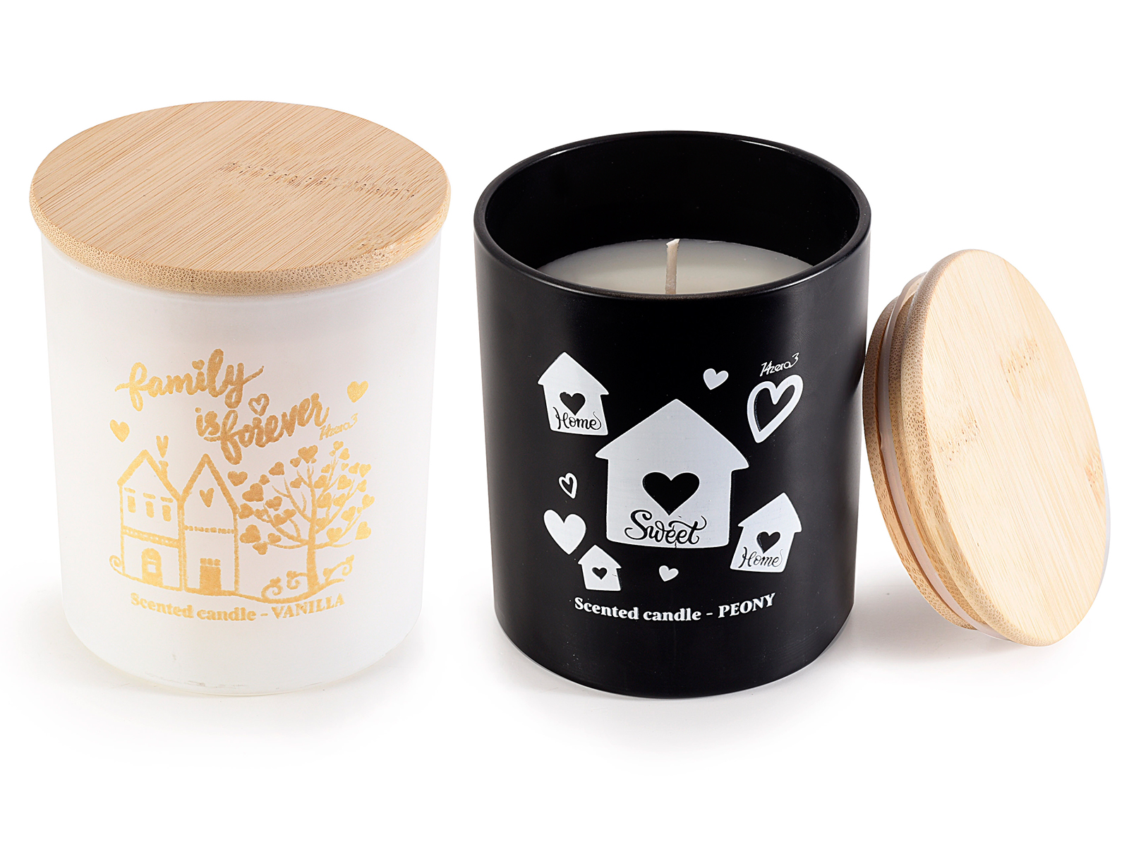 Lumanari parfumate cu imprimeu de casa si familie in borcan de sticla cu capac ermetic din lemn