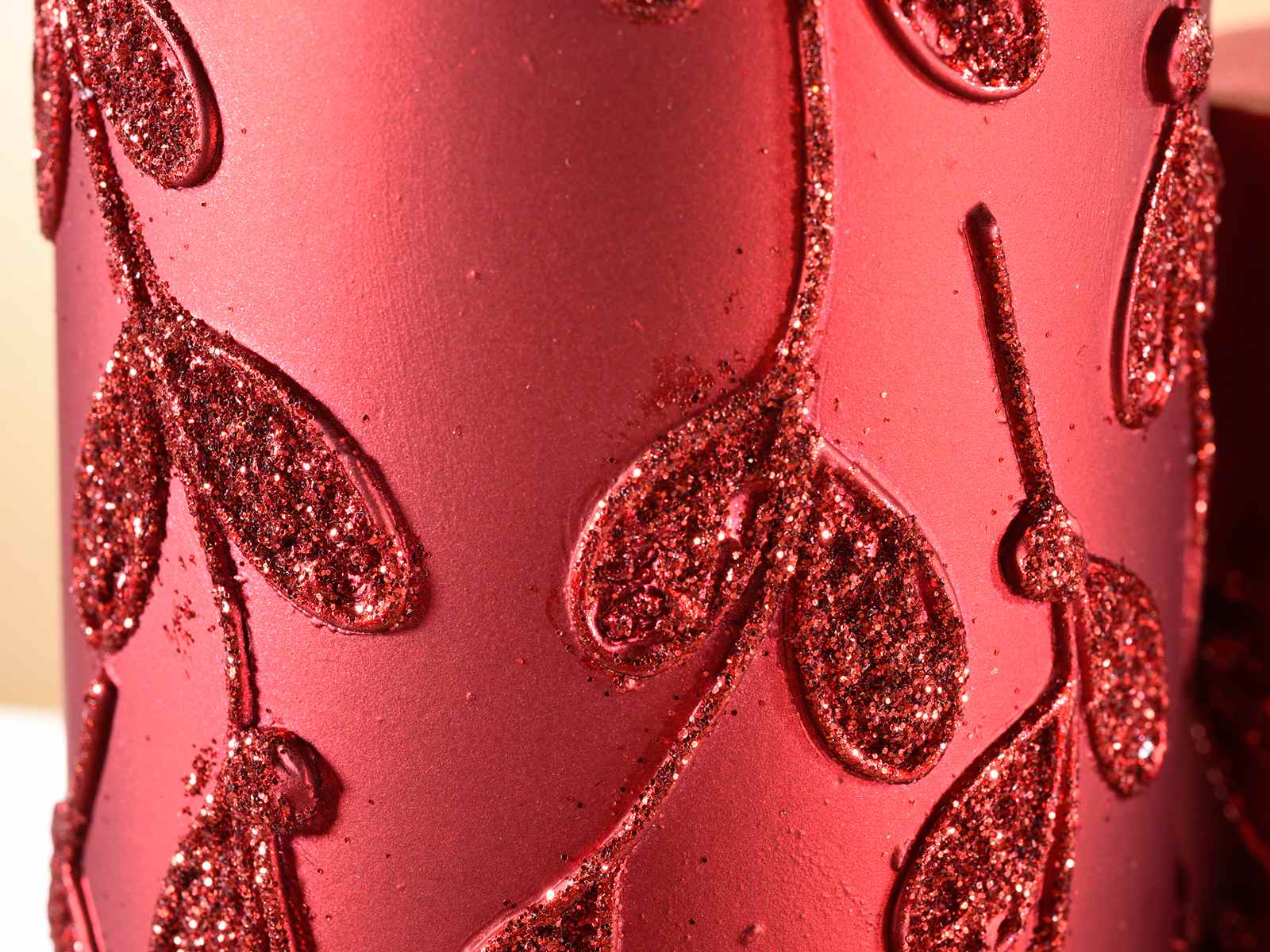 Lumanare rosie cu decoratiuni florale de Craciun in relief