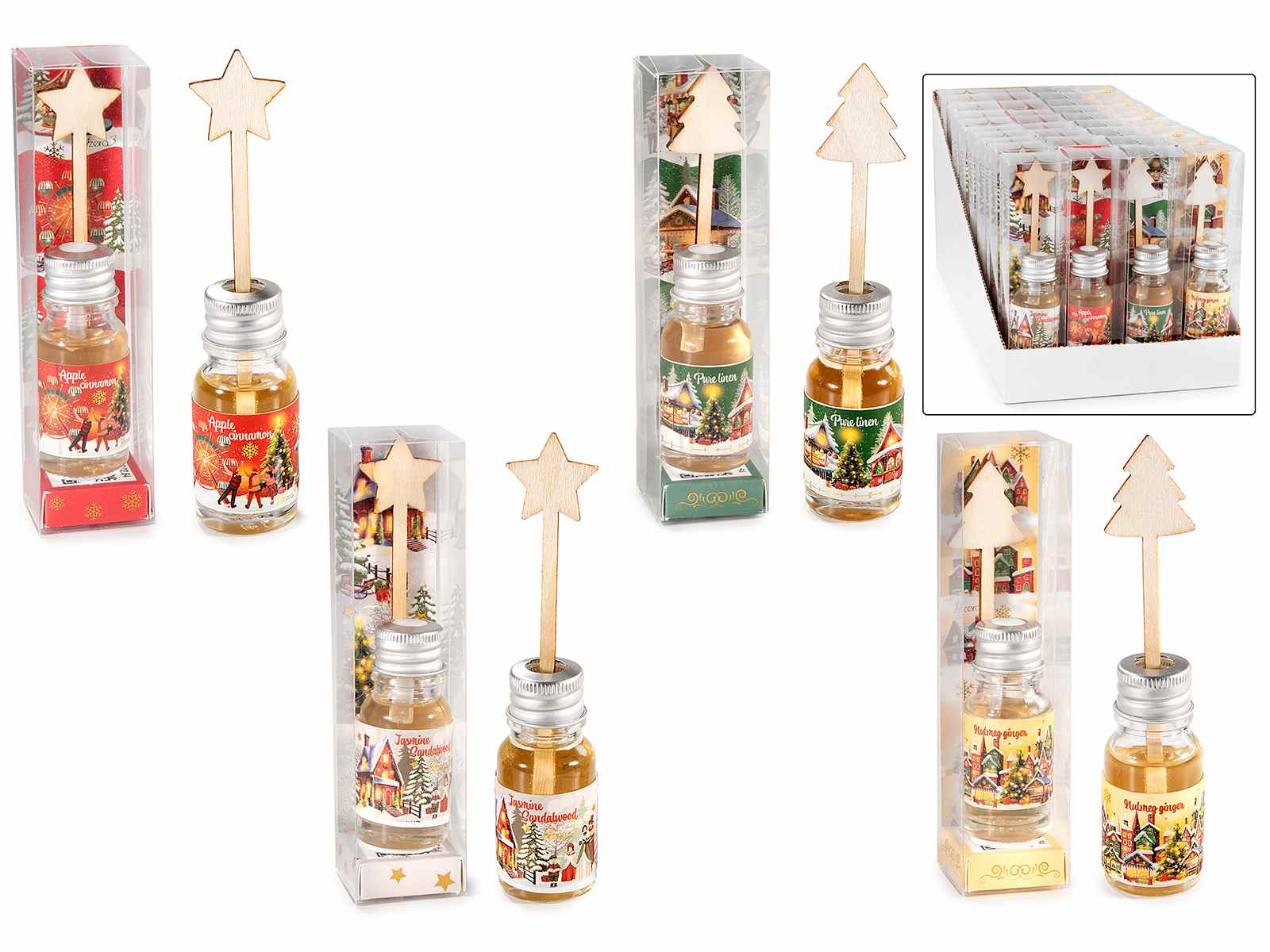 Mici parfumuri de cameră de Crăciun cu bețișoare de lemn modelate în cutie cadou și afișaj de 36 de piese