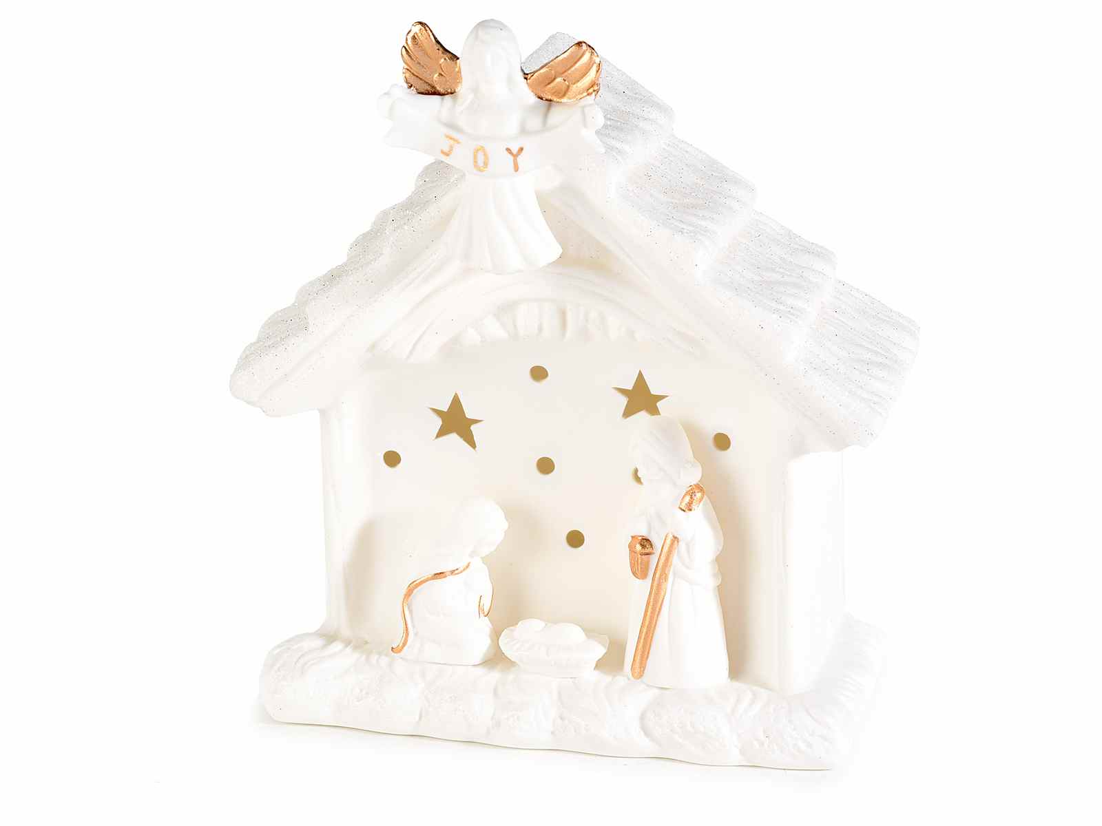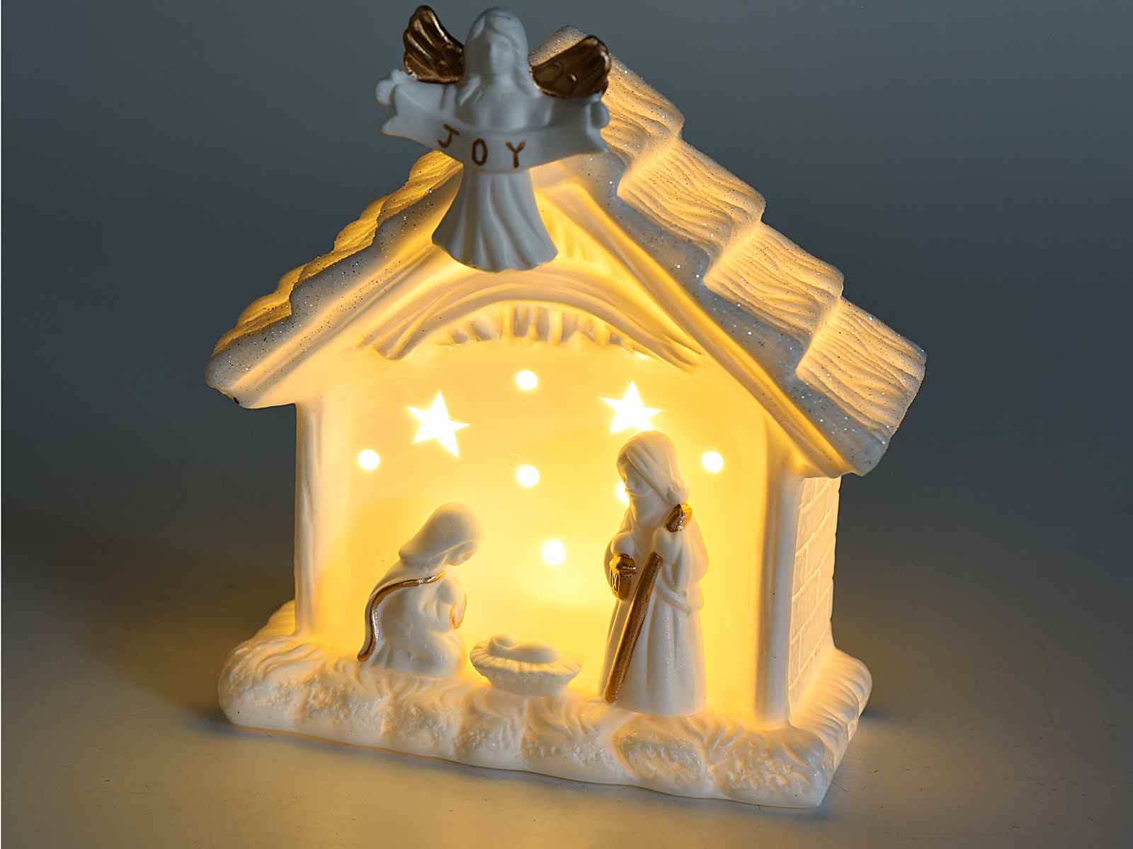 Na?tere din ceramica alba cu sclipici, lumini ?i decora?iuni