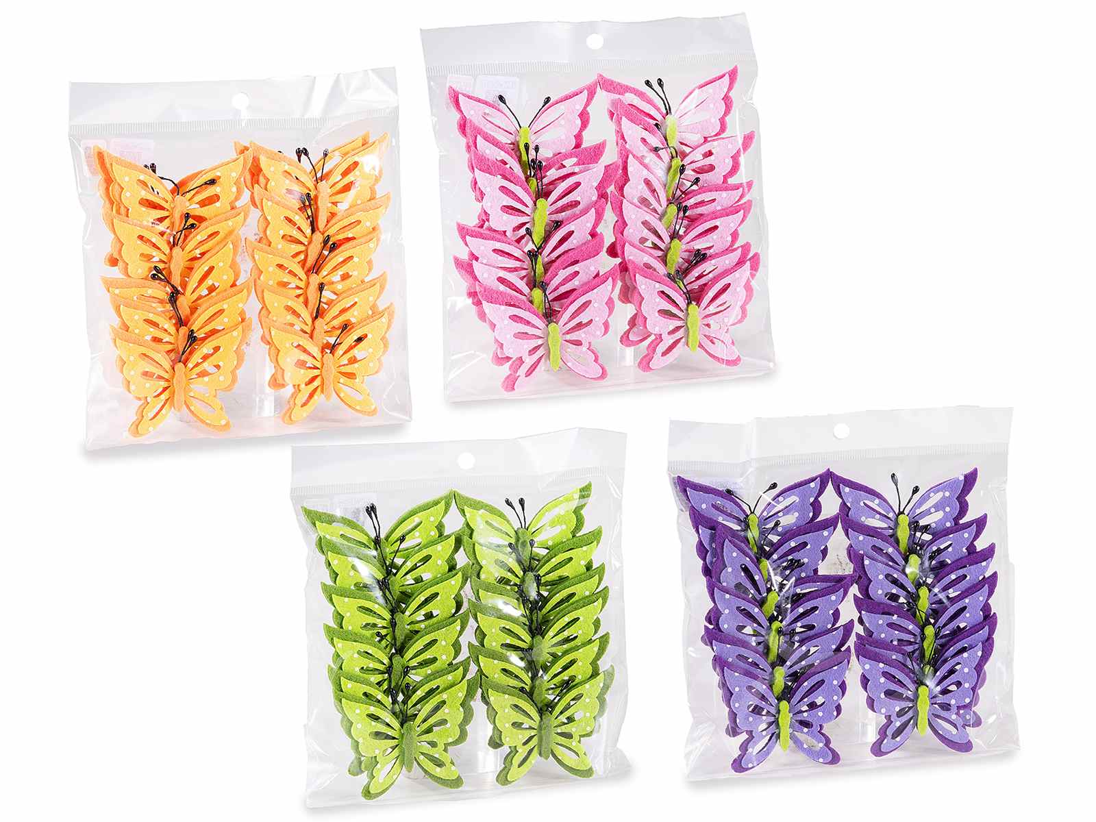 Fluturi decorativi din fetru colorat cu adeziv pentru pachete si blistere de 12 bucati