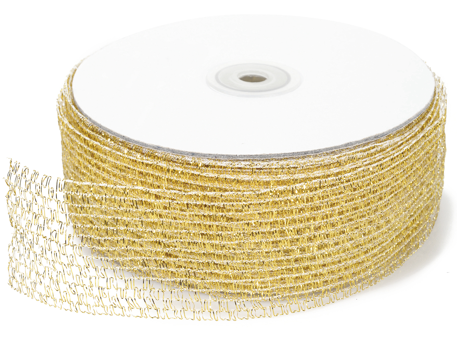 Alegeți panglica aurie modelabilă din plasă pentru a decora vitrinele magazinelor în perioada Crăciunului, pentru a decora brazii de Crăciun, pentru a crea pachete și fundițe foarte originale.
