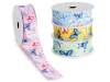 Panglică de satin de 25 mm cu imprimeu cu fluturi