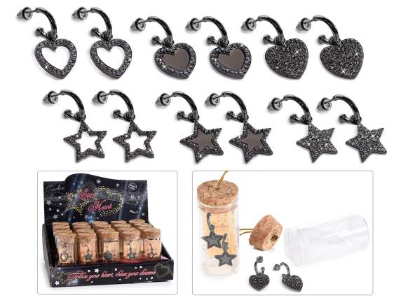 Pereche de cercei din metal „Heart Star” în eprubetă și afiș