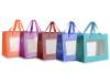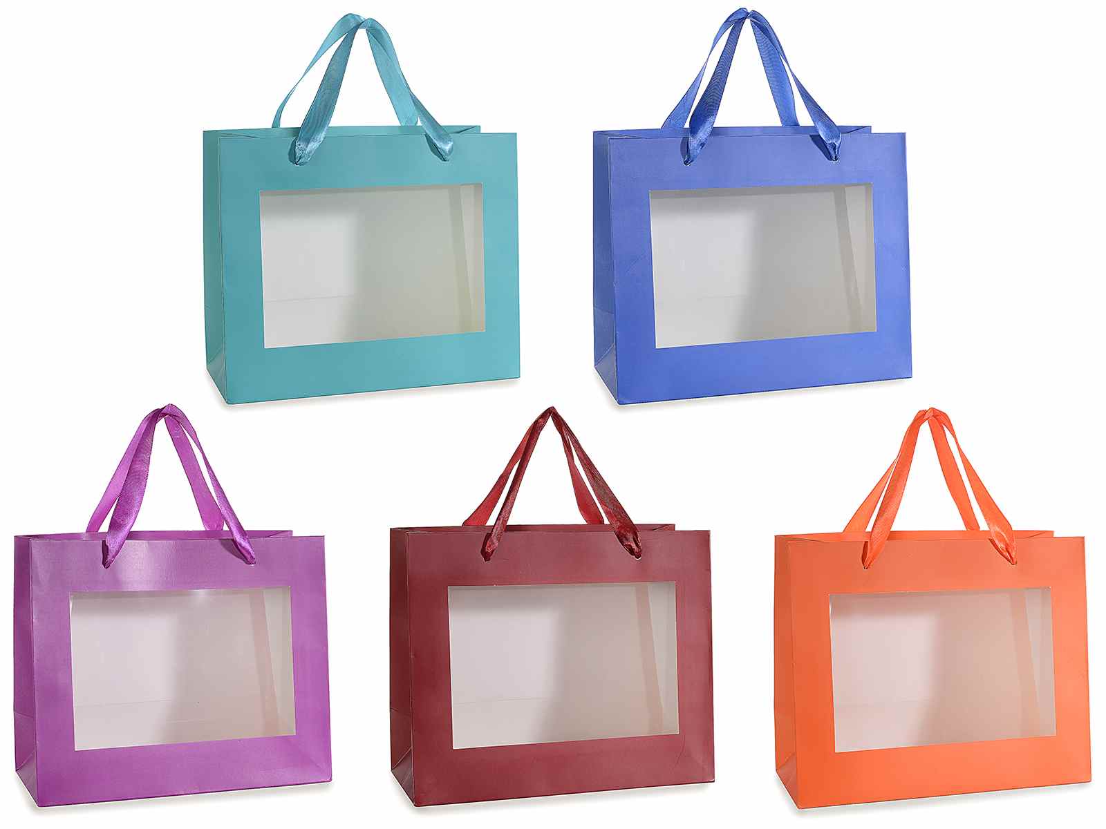 Plicuri, sacoșe de cumpărături, sacoșe de hârtie colorate cu fereastră transparentă și mânere din material textil