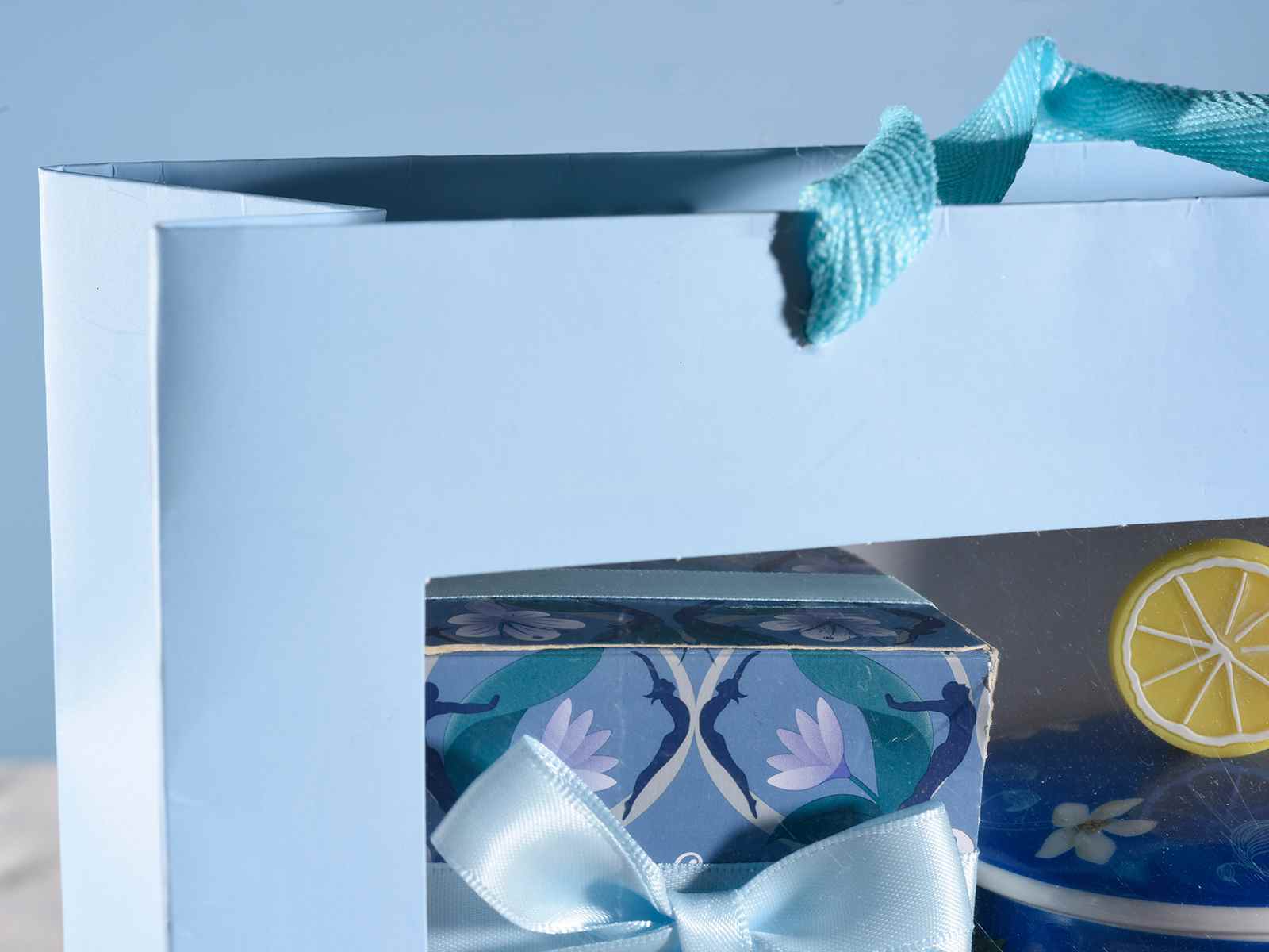 Pungi mici de hârtie colorată cu mânere din material textil și fereastră