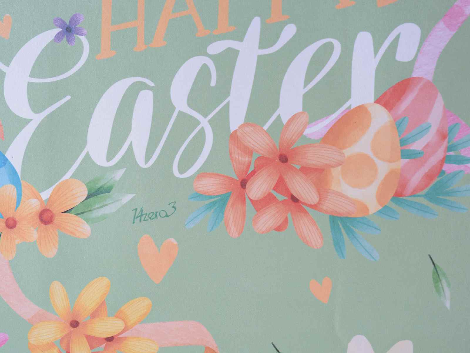 Pungi/plicuri/sacoșe de cumpărături mari din hârtie colorată, cu imprimeu de Paște și mesajul „Paște fericit”