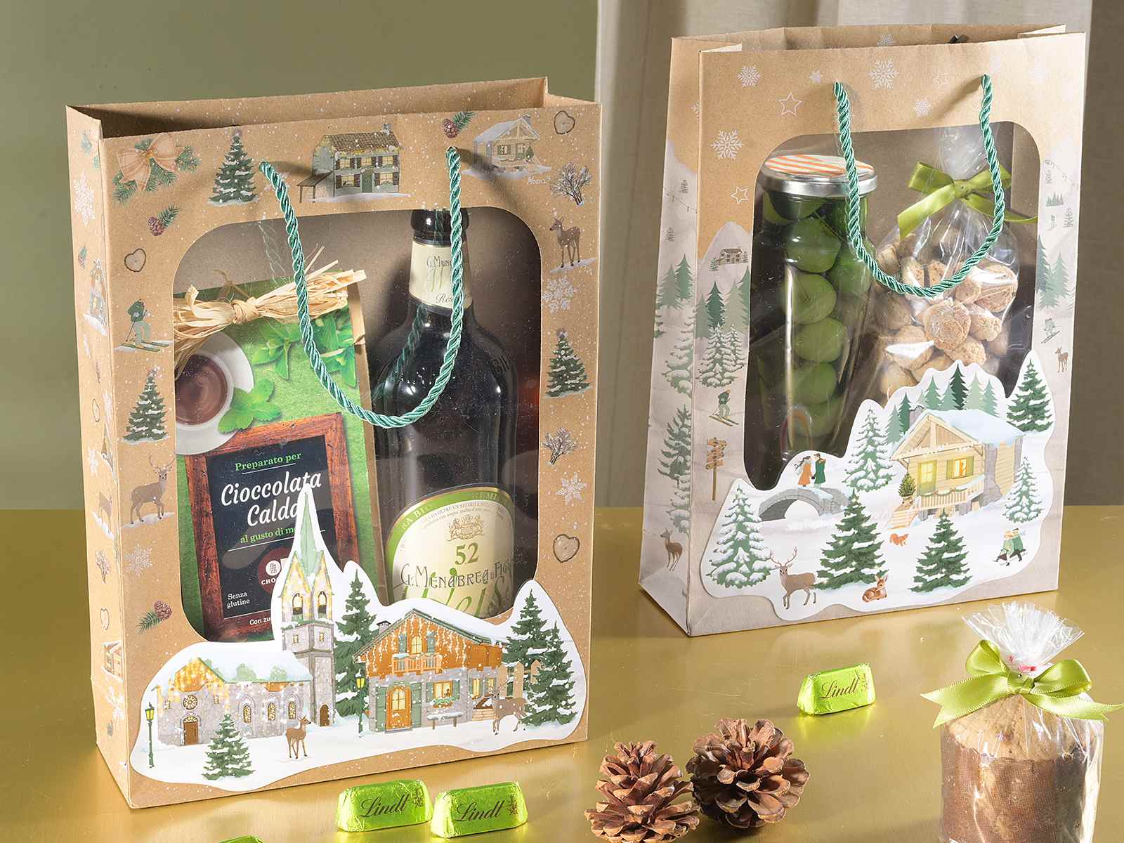 Caseta de Crăciun din carton cu mânere de frânghie |