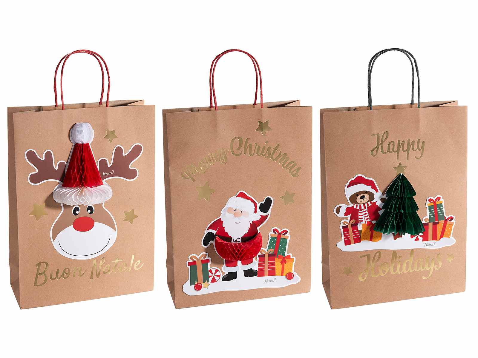 Con manici: 42 H - Grammatura: 160 g - Con scritte in simil oro lucido