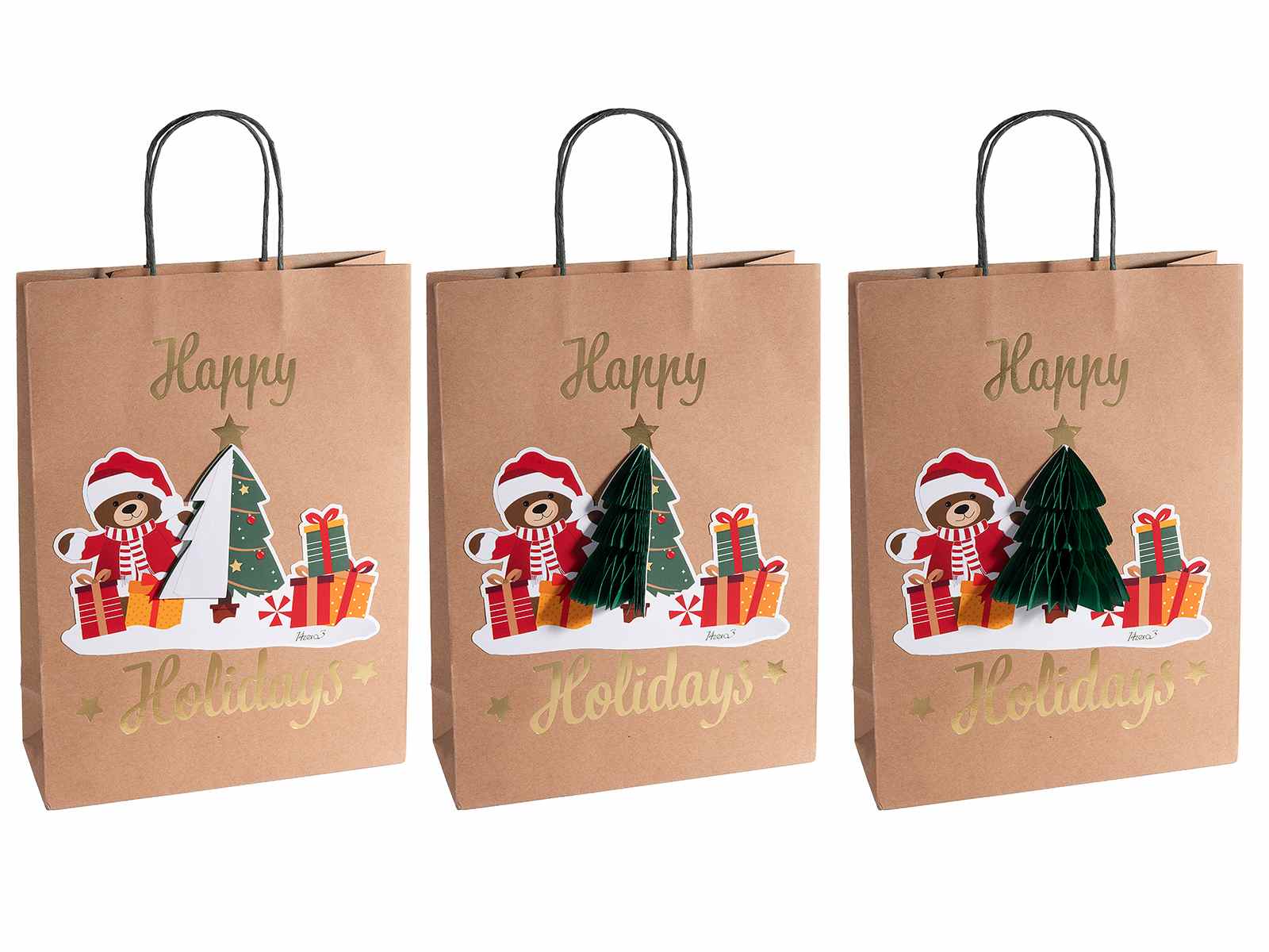 Pungi/plicuri de Crăciun din hârtie kraft cu decorațiuni de Crăciun în relief 3D și mesaje de felicitare, dimensiune mare