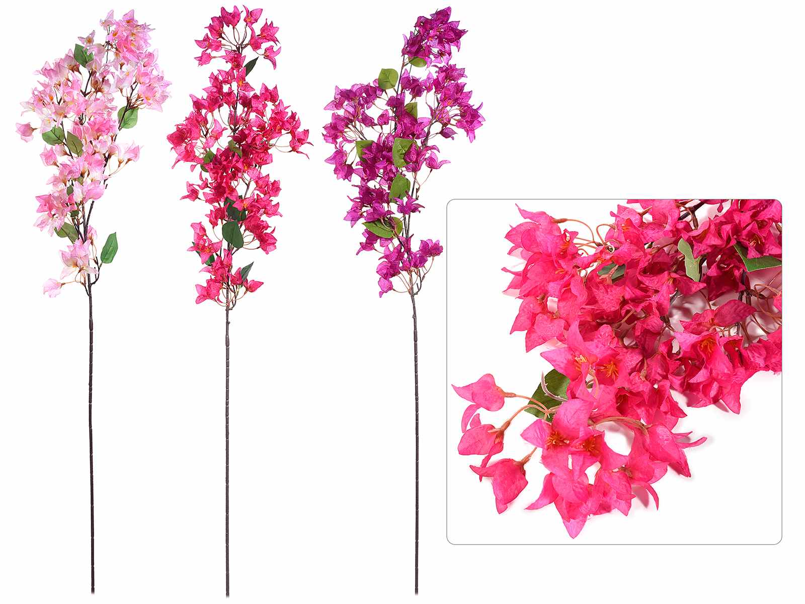 Ramuri artificiale de bougainvillea înflorite colorate roz fucsia și violet