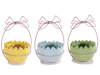 Coșuleț de Paște în formă de jumătate de ou, din beton colorat și mâner metalic roz cu fundă
