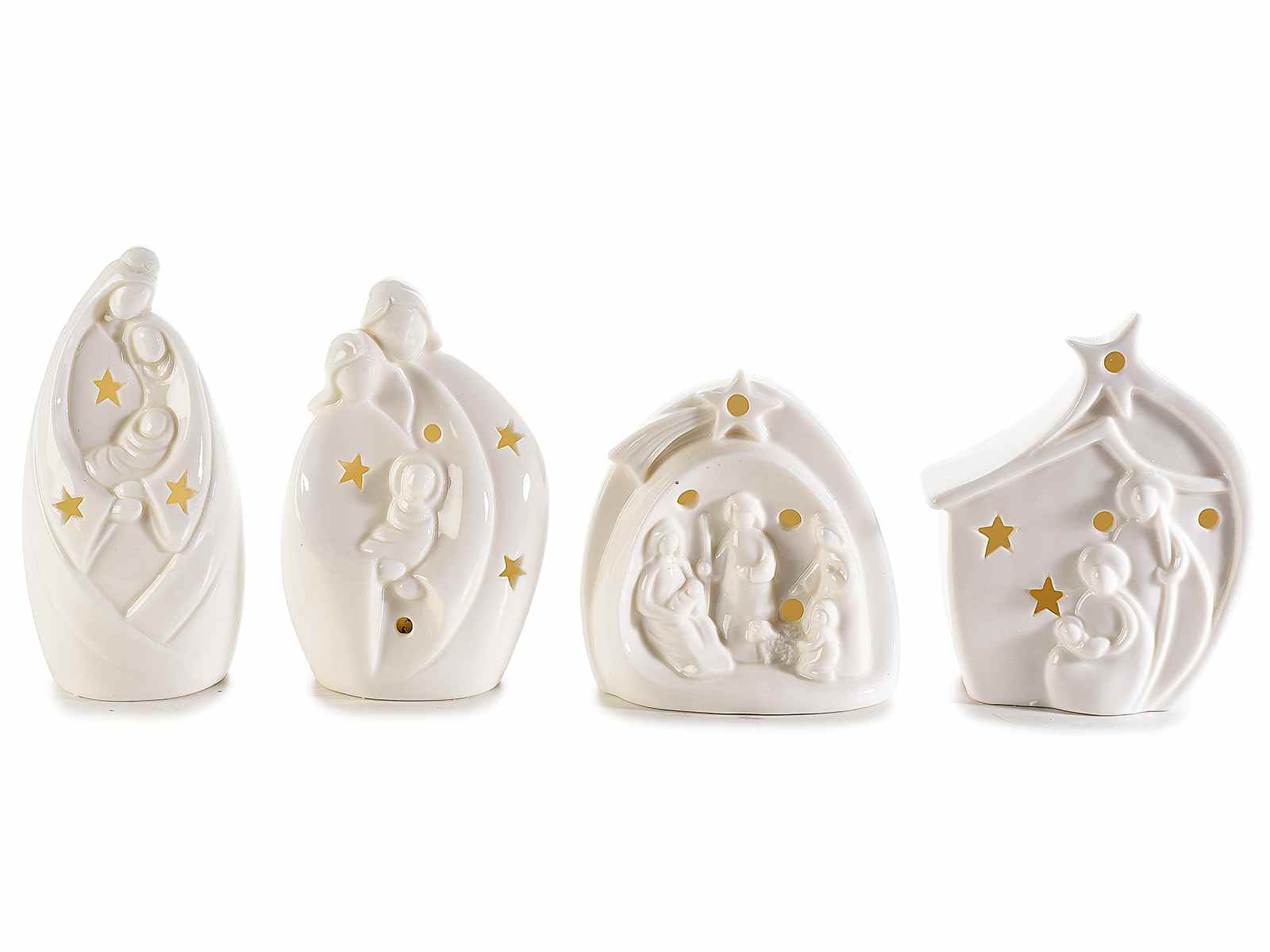 Scenă a Nașterii Domnului din porțelan alb cu lumină LED