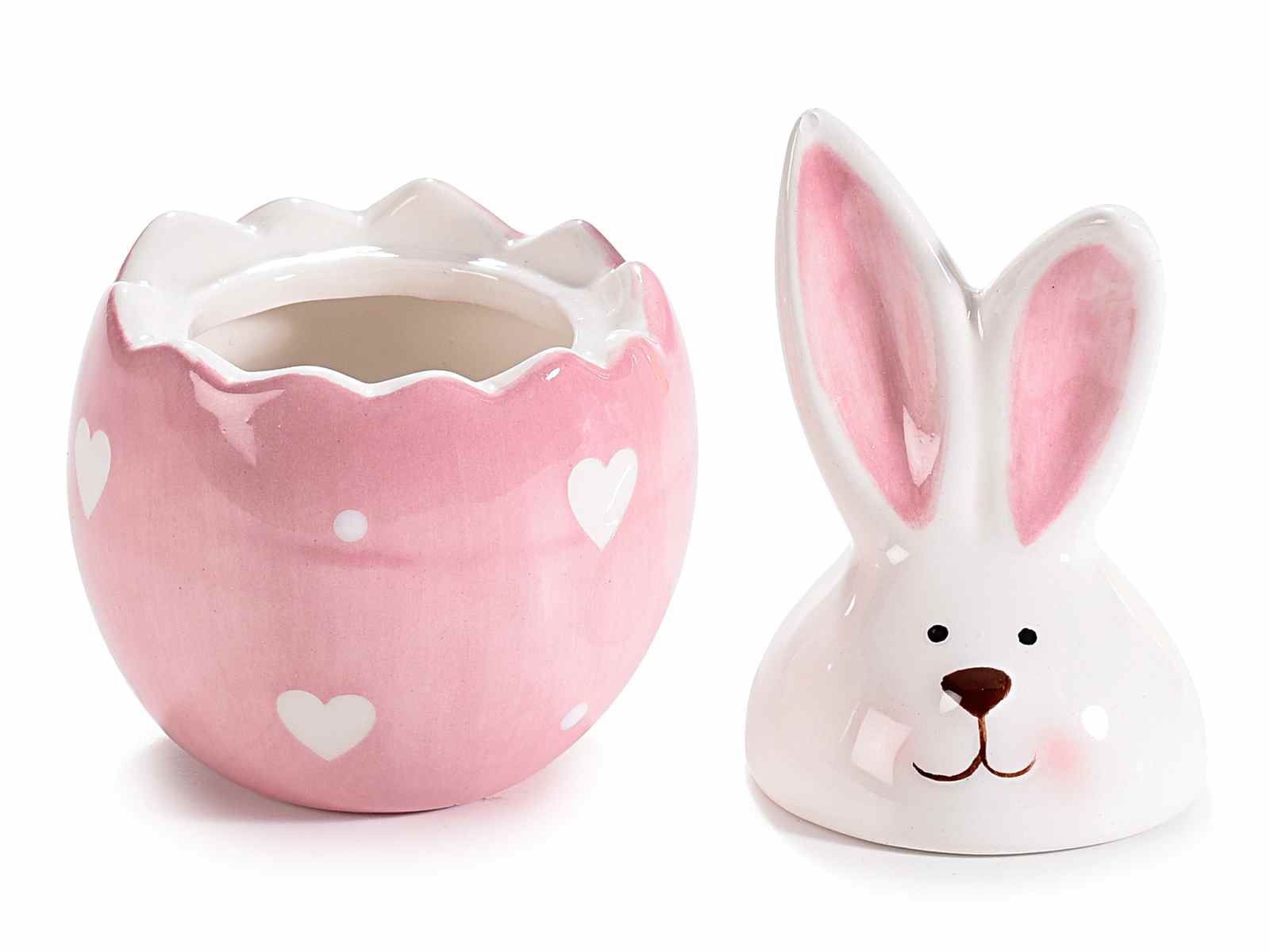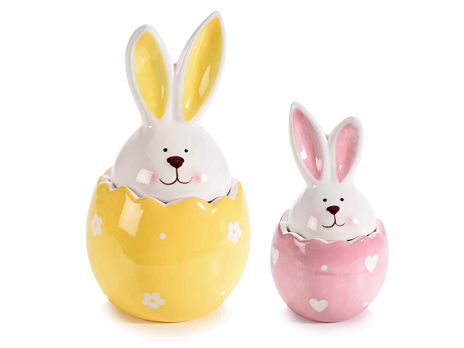 Borcan în formă de ou de Paște / Borcan pentru biscuiți / Recipient pentru alimente / Suport pentru dulciuri din ceramică lucioasă cu iepuraș în set de două