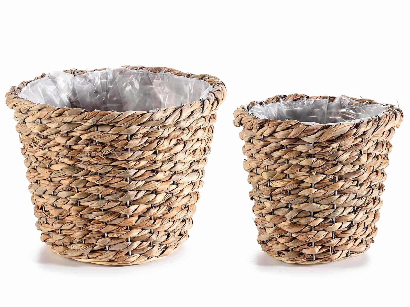 Coșuri din fibre naturale răsucite cu căptușeală interioară impermeabilă într-un set de două piese