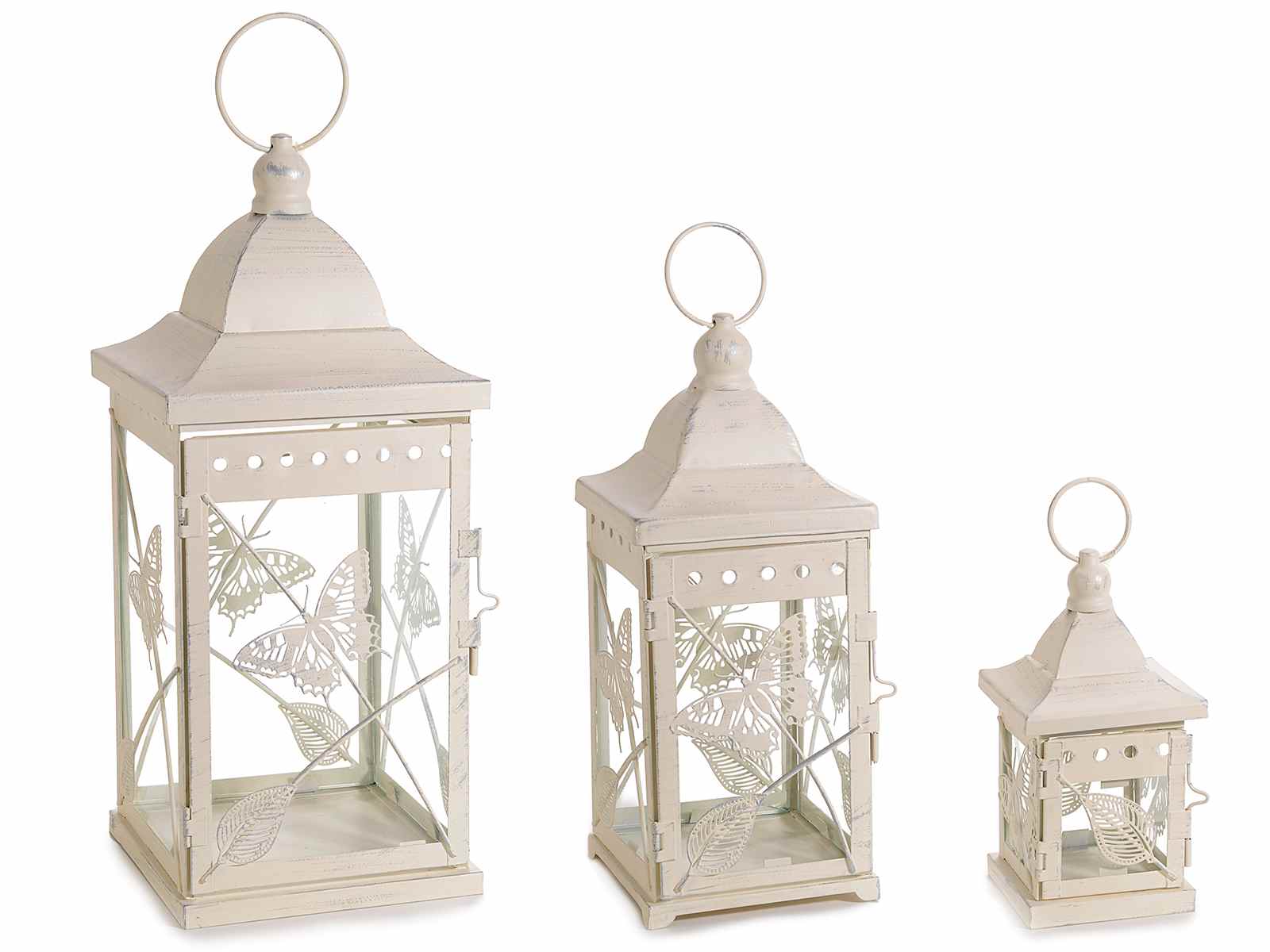 Lanterne metalice cu decoratiuni fluturi in set de 3 piese